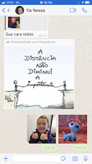Ouvindo o áudio de minha tia Tereza dou até risada... da maneira que ela falou! Horrorizada , e falando que eu n entrasse de jeito nenhum no insta do sobrinho de Marta , eu já estive muito mexida com isso! Ano passado! Nem fome tinha e muita insônia! Agora estou racional já ! Mas fiquei muito mexida! Quem lê linhas coisas aqui sabe! Foi algo que me vez ainda mais agradecer pela vida ! É muito forte! Tocante! A gente fica com vontade de se ajoelhar todo dia! Essa é a verdade .