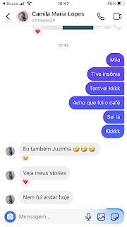 Ana Cristina me chamou hoje pra gente marcar algo .. eu ela e Janete 🤣🤣 acho que vamos pro carmo beber um drink 🍹 kkkkkkkkkkk … aiai 🤣🤣 Eu já disse a Janete que lá n tem isso de dobrado ! Aí ela disse que isso só tem em bairro de pobre ! Que quem frequenta lá é mais turista … olha pra nete ! Achava q ela n sabia kkkkkk. Se essas duas ficarem se fretando pros homens .. kkkkk tô lascada ! Mas acho q não